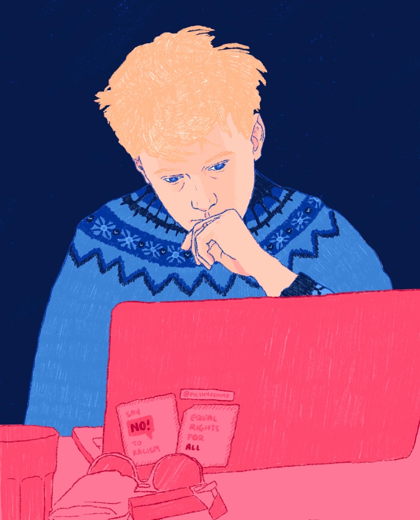 The first picture is a portrait by my wife Bella (@jinspun), who also made the sweater I’m wearing in the second picture